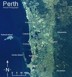 Perth is set on the Swan River, so named because of the native Black Swans which call the river home. It is a sprawling city, extending to Joondalup in the north, Mandurah in the south and Mundaring in the east. The beachside suburbs take advantage of Perth's seaside location and clean beaches. To the East, the city is bordered by a low escarpment called the Darling Scarp.