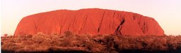 Uluru (also Ayers Rock or The Rock) is a large rock formation in central Australia, in the Northern Territory. It is located in Uluru-Kata Tjuta National Park close to the small town of Yulara, 400km southwest of Alice Springs - latitude 25 deg 21' South longitude 131 deg 05' East. It is the second largest monolith in the world (after Mount Augustus, also in Australia), more than 318 metres (986 ft) high and 8 km (5 mi) around. It also extends 2.5 km (1.5 miles) into the ground. It was described by explorer Ernst Giles in 1872 as "the remarkable pebble".