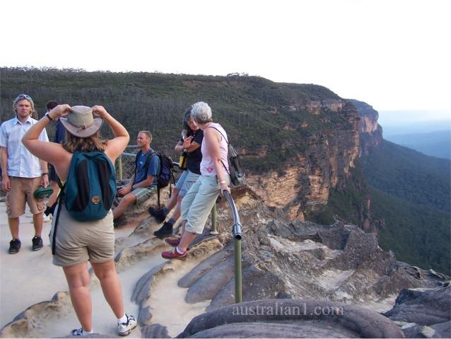 This photograph was taken from the same viewing platform as seen in photos 1 & 2. It is of members of various tour buses that were parked at this location in the Blue Mountains.